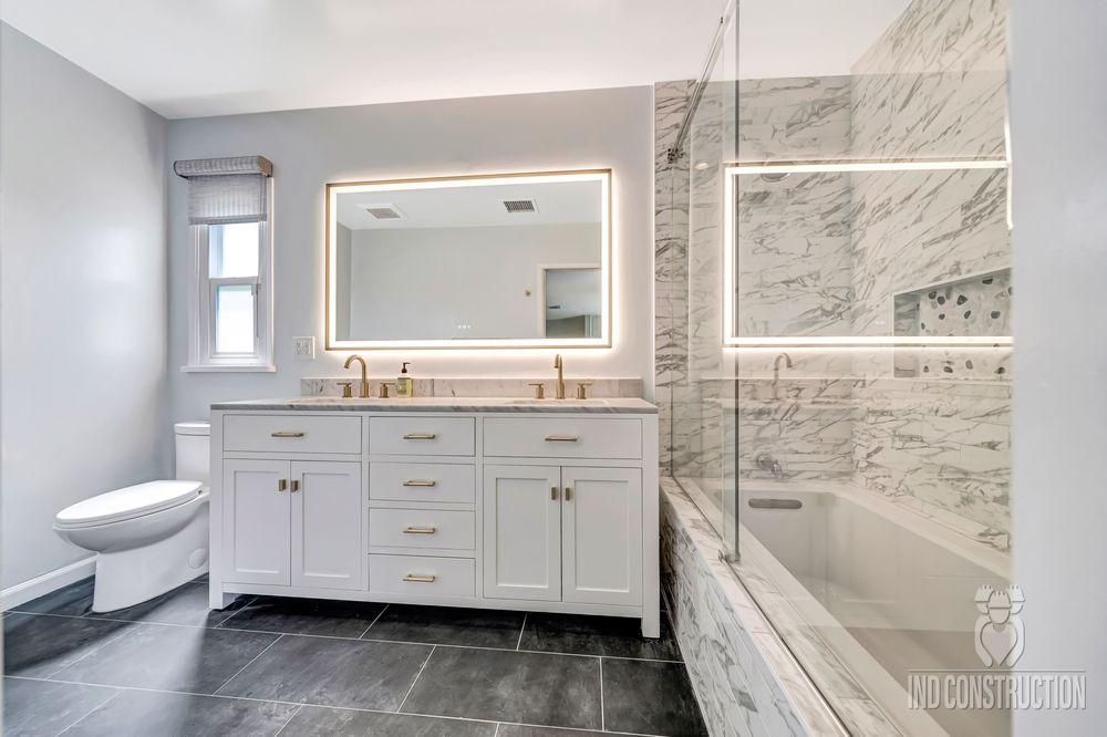 Whether your wishlist includes a walk-in shower, custom-cut stone countertops, floor lighting, a waterproof audio system, or top-of-the-line vanities and fixtures, we can handle it all. Our team routinely installs showers, baths, vanities, mirrors, cabinets, toilets, sinks, flooring, and more—delivering expert craftsmanship and long-lasting results.
